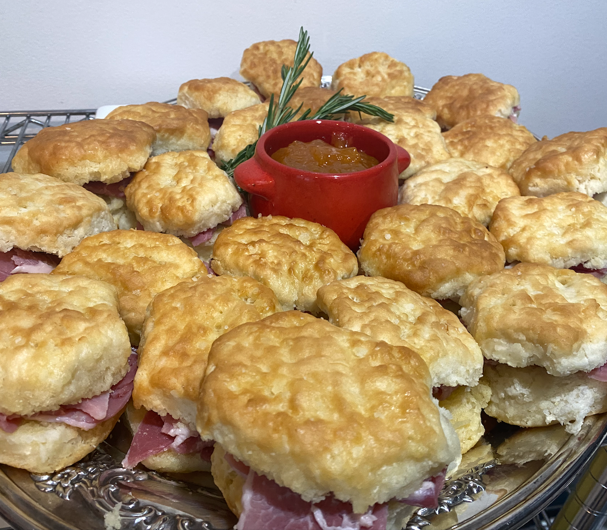 - Country Ham on Cheddar Jalapeno Biscuits with Apricot Jam
